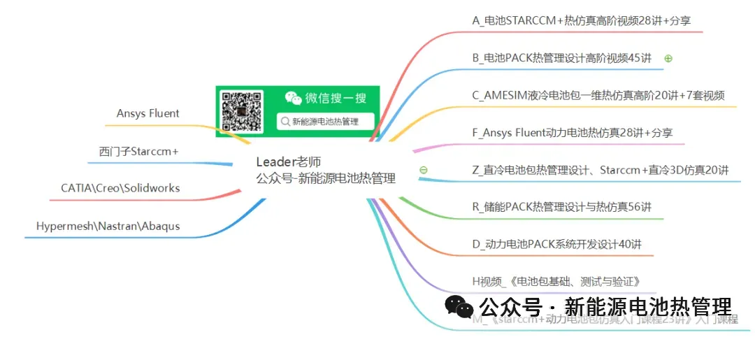 相对的,Leader老师本人具备从业近10年的动力电池及整车热管理经验,精通热管理系统设计开发及零部件设计,FLUENT、STARccm+、AMEsim、Icepak、Floefd等多款软件仿真,在新能源热管理行业深耕多年,是新能源领域的集大成者。所有课程都是结合本人实际工作、具体项目经验总结后录制的,持续答疑解惑。