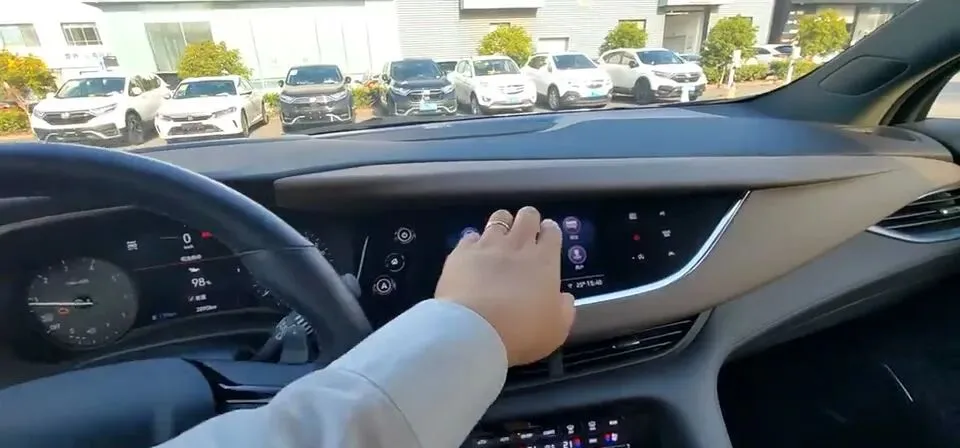 昂科旗驾驶舱内饰,软包和亮黑饰板,豪华感和科技感。