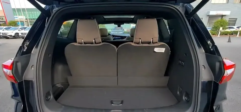 昂科旗后备箱空间,第三排座椅电动放倒。