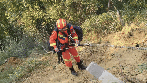 梧州一辆载5人轿车坠落深坡,消防利用绳索、担架营救