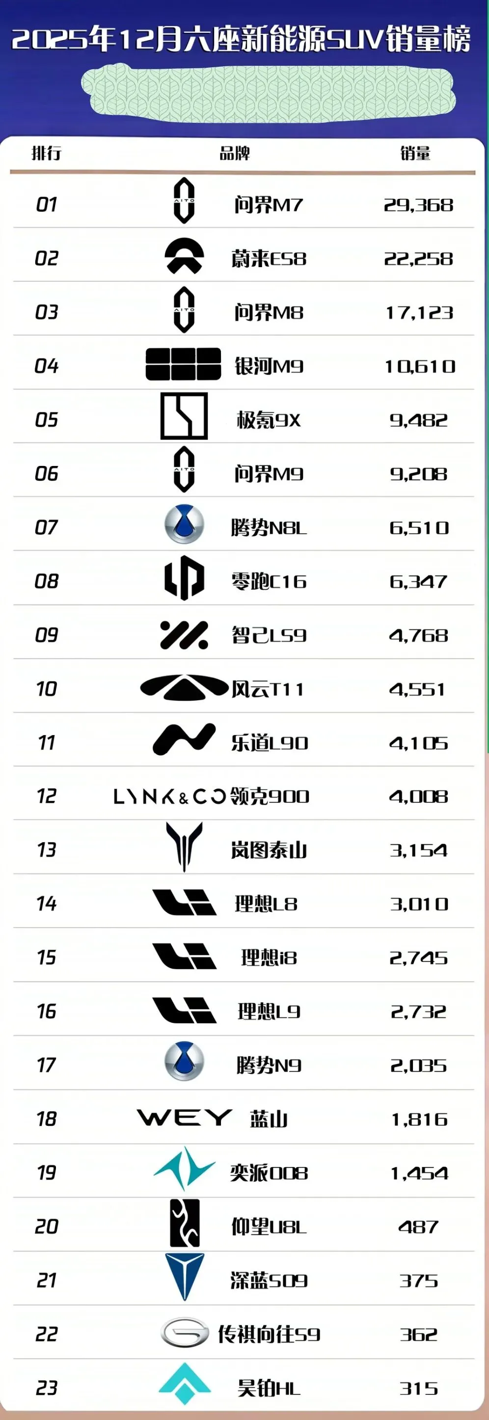 反复核对了两遍图里的表格,才确认不是眼花。之前刚发的23款六座SUV十二月销量榜,直接因为这组数据作废,连带着榜单里其他车型的排名也跟着变了。