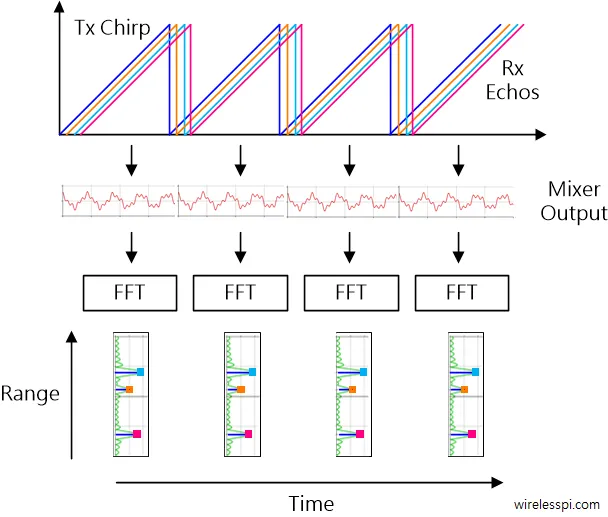 图7 multiple Chirp echosRef:https://wirelesspi.com/fmcw-radar-part-1-ranging/
