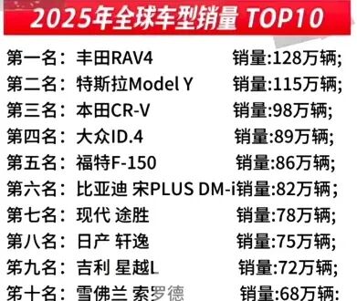 2025年全球SUV销量出来了,荣放卖了128万辆,成了全球第一。