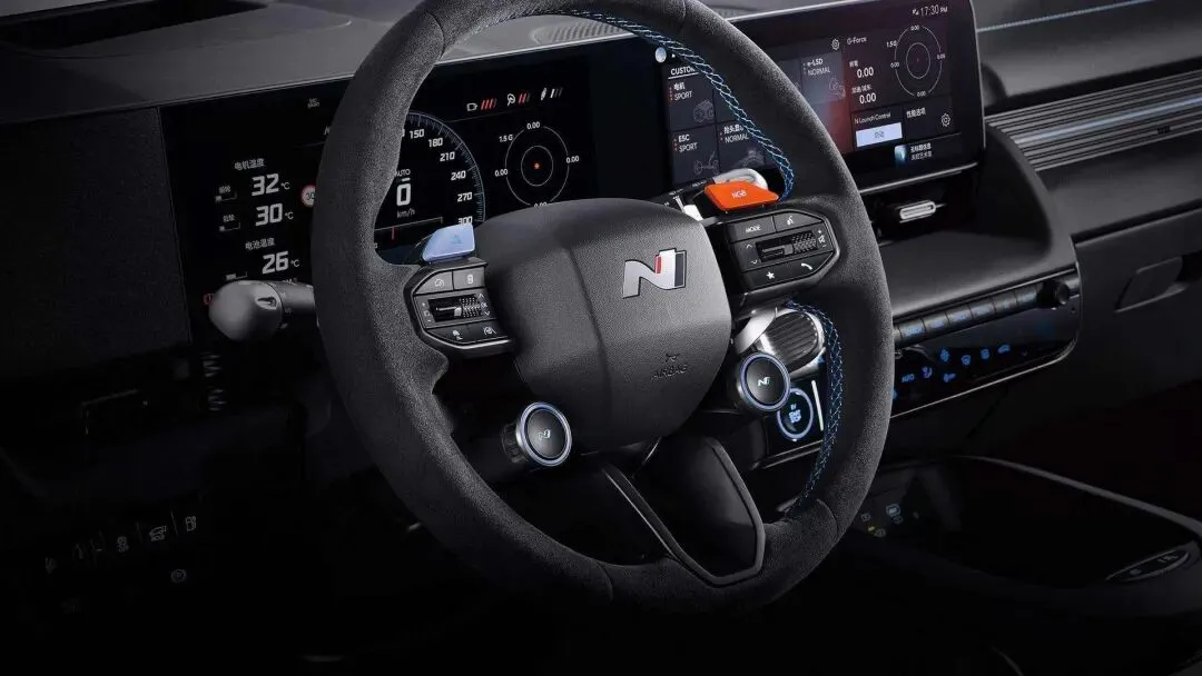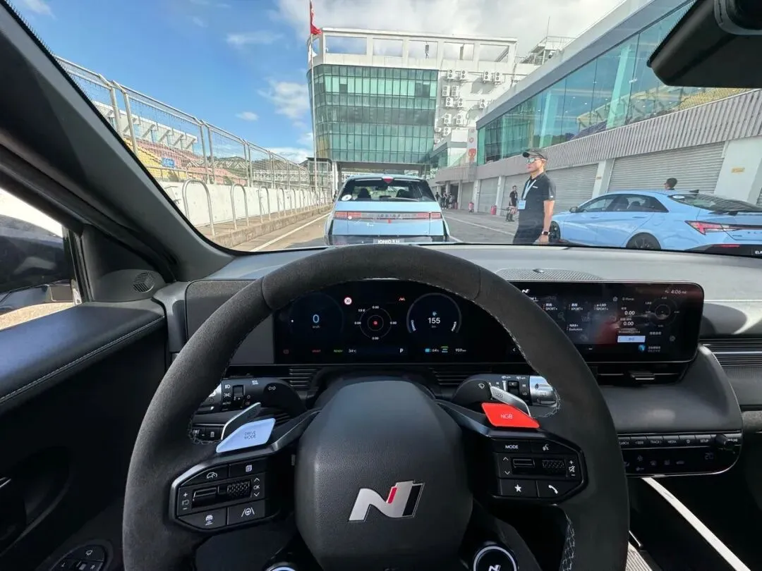 我进.到车里.第一反.应就.是:这不就是.赛道风.的客厅嘛。那种N专属.方向盘,厚度刚.刚好,握着不打.滑,虚位比.普通版.少很.多。然后我.现在敲.一下中.控——嗯,这个地方.塑料感.还是.有点强,尤其.对我这种.有强迫症.的,有点出.戏。仪表.和中控屏.是连体.的,不过UI倒挺清.晰,就是有.点韩系.那种“非得花里.胡哨”风格。座椅是.半桶形的,腿部.和肩部支.撑都.到位,我180坐着刚.刚好。