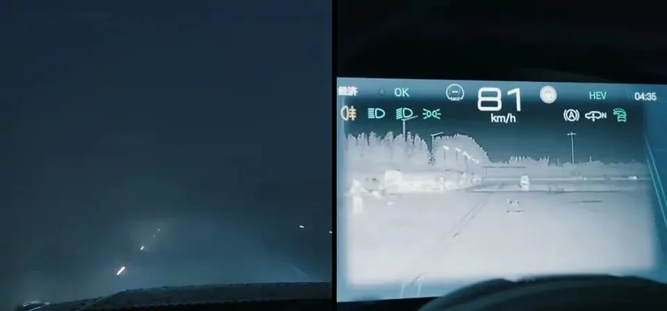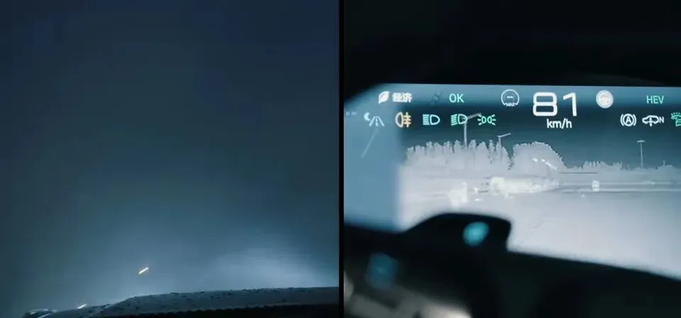 这台车搭载的红外夜视系统,我可以明确地跟大家说:相当于直接给你开透视。