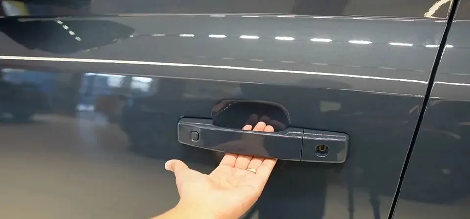 大家最关心的一定是:无钥匙进入按钮要设计成反手操作这事儿到底是怎么想的。它确实就是那种你第一次摸车会愣一下的设计——你手得绕一下、反着按。好不好用?习惯了也能用,但我个人不是很喜欢,因为这不是“个性”,这是“多一步”。