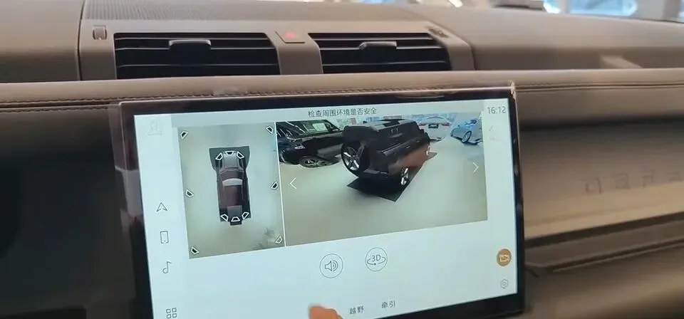 更有意思的是后视镜:车外的后视镜集成了摄像头,能提供带3D模拟效果的全景影像;还集成了两颗雷达,可以探测车身的水位高度。这就很路虎:不炫技,但你真过水的时候,它比嘴炮有用。