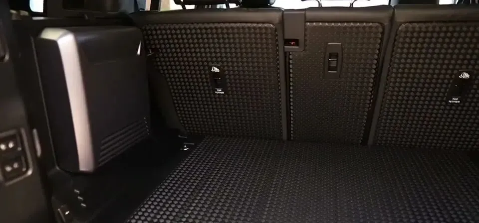 说完科技聊聊空间。卫士后备箱我挺喜欢:后备箱地板以及后排座椅的靠背,都是非常容易擦洗的硬塑料。这点必须给大大的好评——越野、露营、带狗、装湿泥装备,弄脏了你不会心疼。
