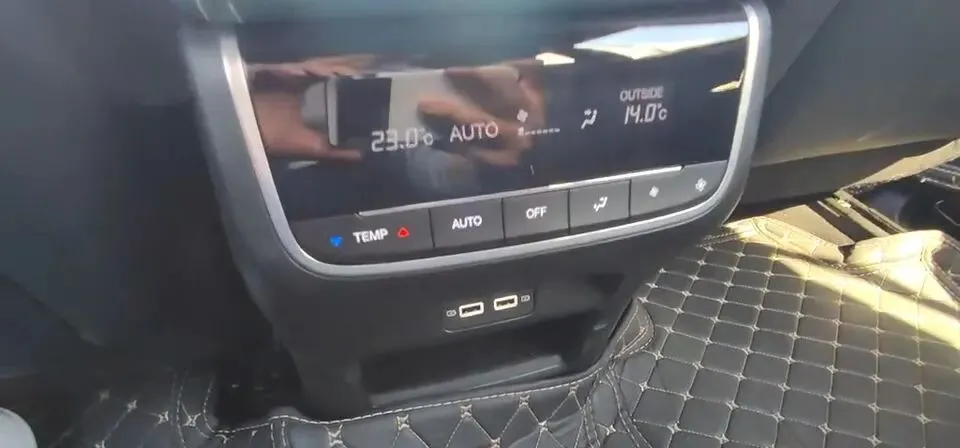更关键的是第二排功能:后排集成独立温度控制,还有两个充电接口和一个储物格——这就是家庭用车的“高频刚需”,而不是噱头。