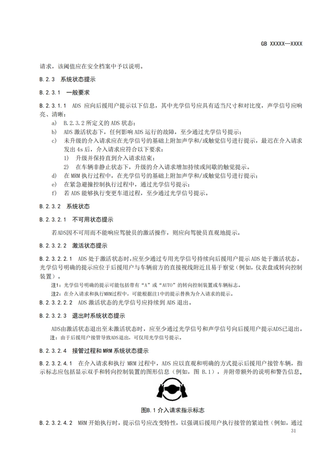 按照《中华人民共和国标准化法》和《强制性国家标准管理办法》,工业和信息化部装备工业一司组织全国汽车标准化技术委员会开展了《智能网联汽车 自动驾驶系统安全要求》强制性国家标准的制修订,已形成征求意见稿,现公开征求社会各界意见。