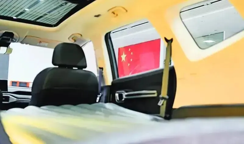 空间更是王炸。二排能伸直腿,1037mm的腿部空间,我同事小王上次带他娃去滑雪,后排一躺,娃直接睡着了。前排双零重力座椅按摩又加热,开长途像坐云朵。后备箱更是离谱:常规580L,放倒能塞1620L。上周小王约我露营,他家那辆轿车后备箱塞了2个箱子就挤得慌,T9L直接装了3个28寸行李箱+露营桌椅,车门开到75度,他老丈人上下车都没人扶。