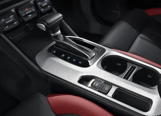 换挡杆是采用了圆滑的设计风格,档把左侧有镀铬的加减档按钮,下方的钢琴烤漆材质给人一种尊贵感。