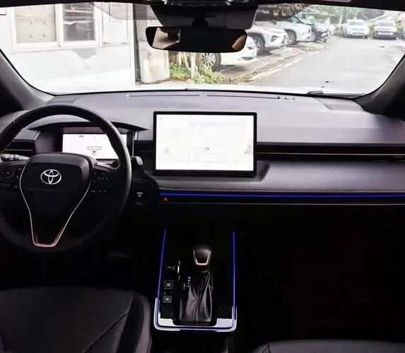 内饰设计就是典型的丰田风格了,中控台那块12.3英寸的悬浮屏现在是标配了,下面是空调出风口和物理按键,布局挺清爽的。用料谈不上高级但也不会太廉价,该软的地方软该硬的地方硬,符合这个价位的预期。车机系统搭载的是丰田云悦享智联,基本的导航、语音控制、手机互联都有,流畅度还算不错,虽然和国产新势力那种智能座舱没法比,但日常用用够了。