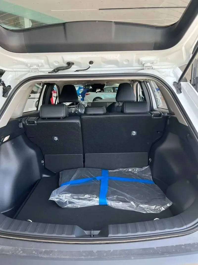 内饰空间这块是锋兰达的一个重点,毕竟轴距摆在那2640mm,这个尺寸在紧凑型SUV里不算特别出众,但丰田对空间的挖掘能力你得承认。后排坐进去头部空间还算充裕,腿部空间应付家用没什么问题,中间地台凸起不算太高,偶尔坐个人也能接受。后备箱容积438L,放倒后排座椅之后能装下不少东西,周末带家人出去玩装行李没压力。