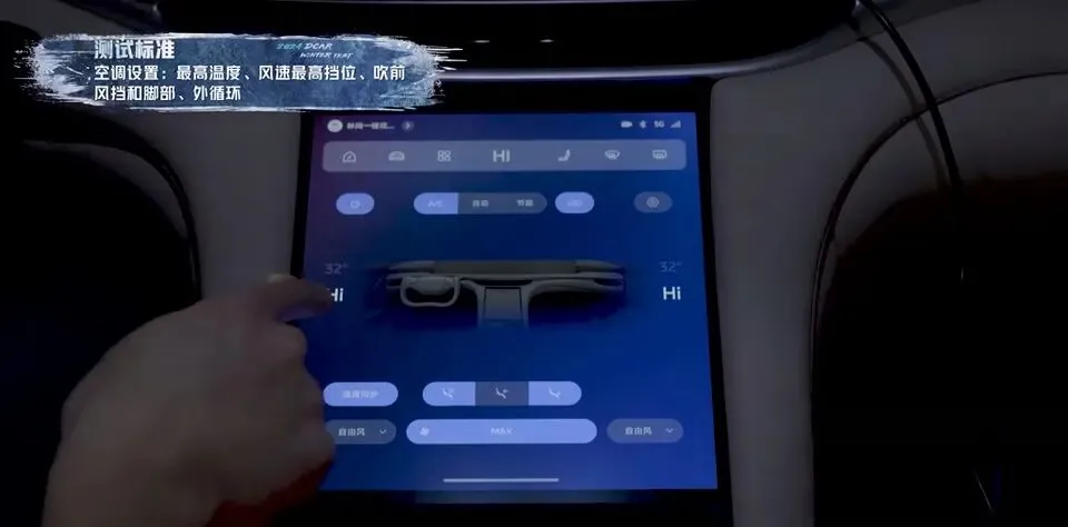 空调测试:最高温度、最高风量、吹面部、吹脚部、外循环