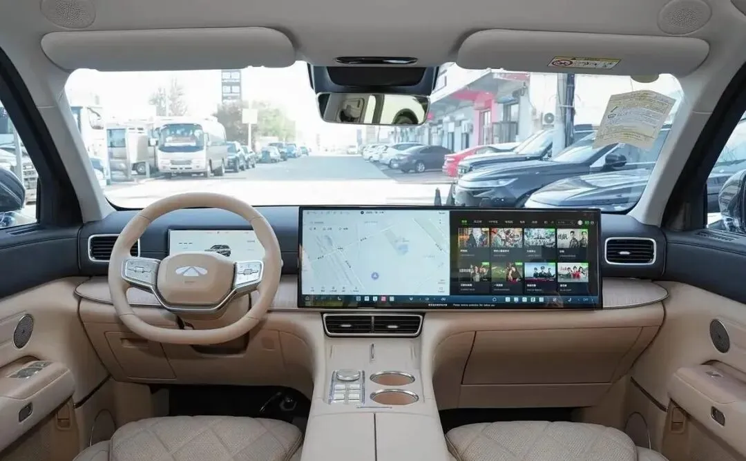 进入车内,风云T11主打豪华静谧座舱,采用大面积软质材料包裹,搭配木纹、金属饰板点缀,配置方面,新车全系搭载30吋6K一体寰宇屏+17.3吋后舱娱乐屏,配合伯牙之音23扬豪华音响与256色律动氛围灯,打造双IMAX家庭影院级体验。车机系统搭载全新小奇同学AI语音助手,支持多音区识别、方言交互与多屏信息流转,空间方面,新车采用2+2+2六座布局,3120mm超长轴距带来充裕的乘坐空间[6]。前排180cm乘客乘坐时,头部有一拳两指余量,腿部空间宽松,无压抑感。