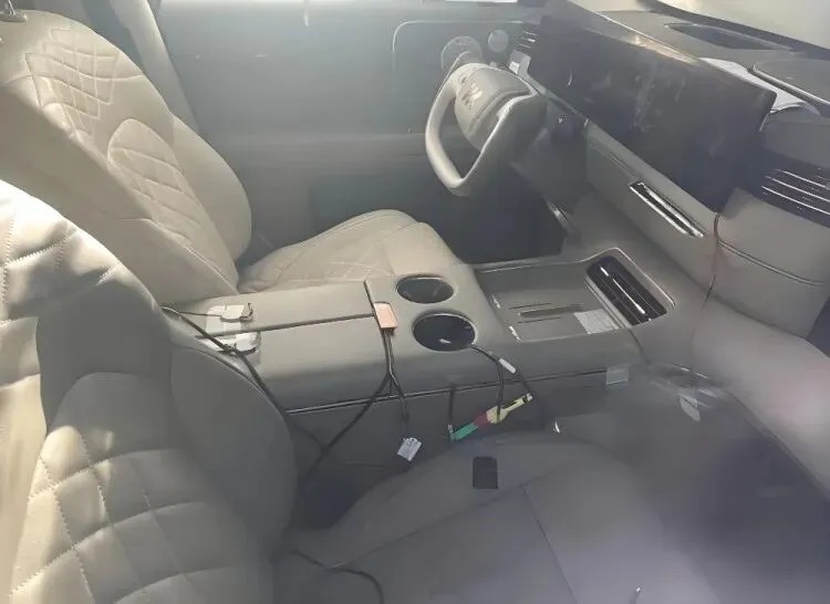 细节来看,新车配有半幅式方向盘,车内各种皮质包裹很上档次,中央岛台将主副驾完全隔断,岛台上配有手机无线充电、杯槽、且使用了双开门的中央扶手厢。在座椅布局方面,智己LS8会提供5座和6座版本选择。