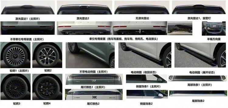 从此前的申报信息来看,诸如原厂的拖拽资质、电动踏板等配置均出现在LS8上,新车根据配置不同至少有4种轮毂搭配,包括两款黑化轮毂,中高配车型带有激光雷达,支持高阶智能驾驶辅助。