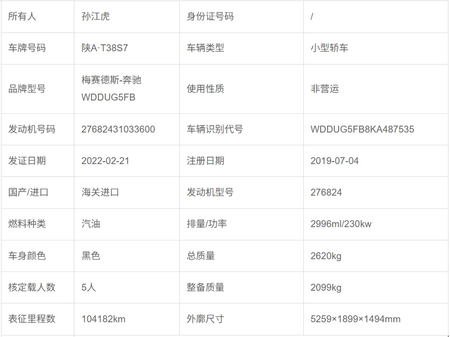 标的名称:车牌号为陕A·T38S7梅赛德斯-奔驰牌小型轿车一辆(不含车牌号)