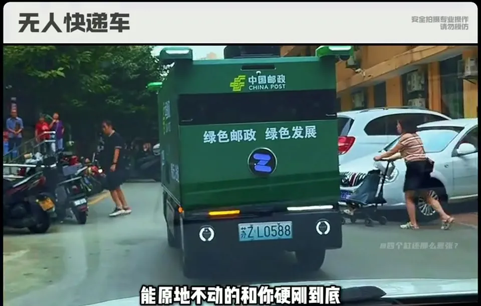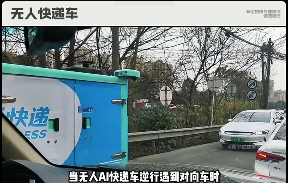 无人AI快递车逆行遇到对向来车,你猜谁让了?