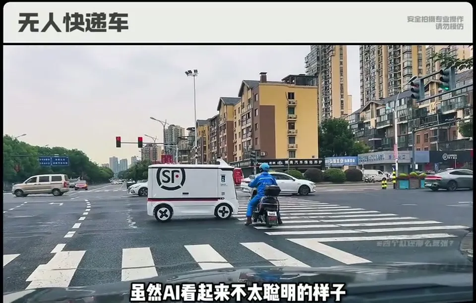顺丰无人快递车在斑马线上行驶