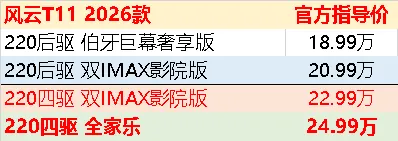 所以从权益这个逻辑来说买四驱双IMAX性价比最高,赠送了20000元的配置,包括零重力座椅和21英寸轮毂,四驱全家乐仅赠送21英寸轮毂。