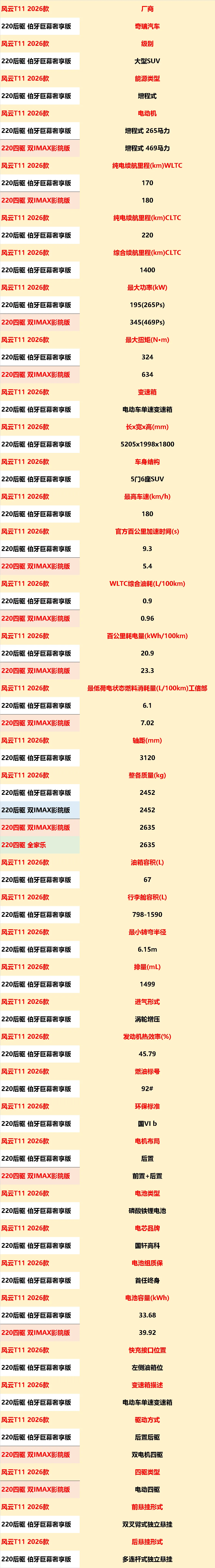 奇瑞风云T11全系增程车型,