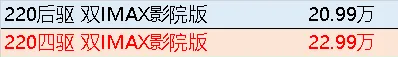 比后驱双IMAX版贵20000元。