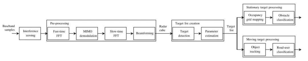 Ref:https://www.researchgate.net/publication/349761472_Automotive_Radar_Signal_Processing_Research_Directions_and_Practical_Challenges
