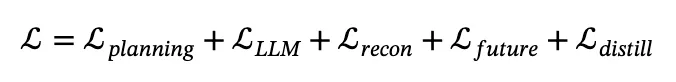 损失函数 。我们通过规划、视觉问答、蒸馏以及每个替代任务对应的损失的加权和来监督网络。