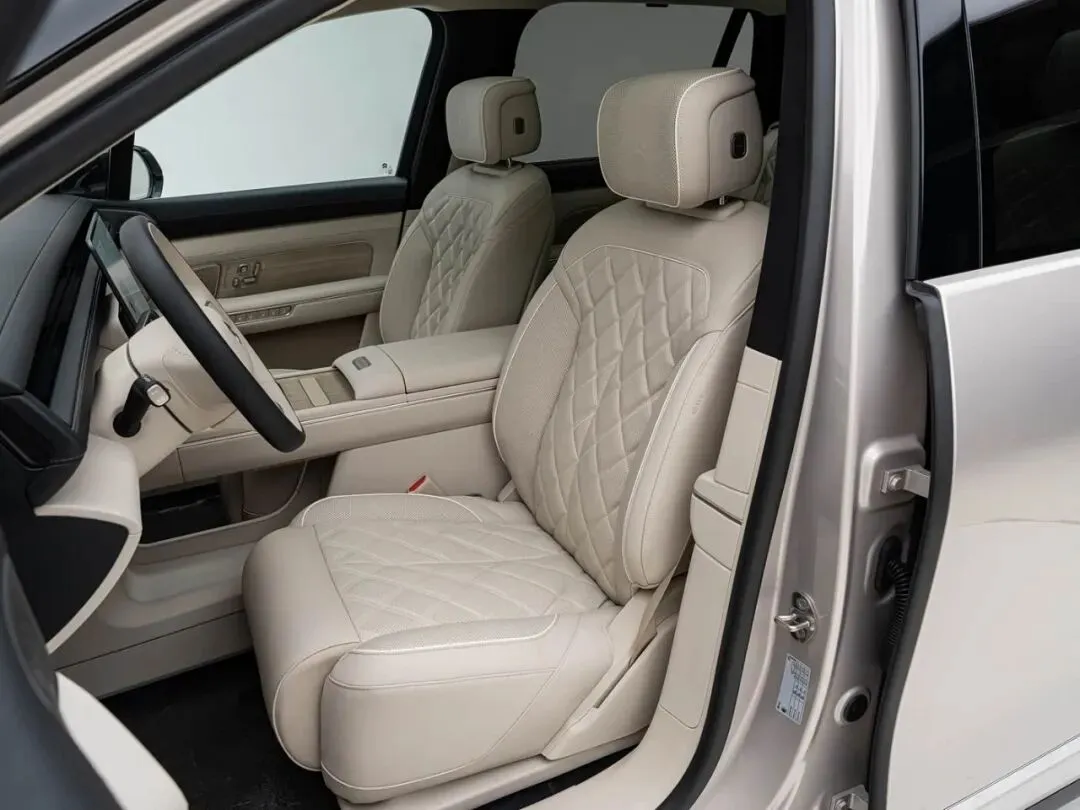 座椅用的是北美安格斯公牛的NAPPA皮,摸着确实细腻。中控屏15.6英寸,分辨率3K,边框和屏幕的R角完全对齐,这个细节可能99%的人不会注意,但就是这种地方,才让人觉得这是台豪华车。