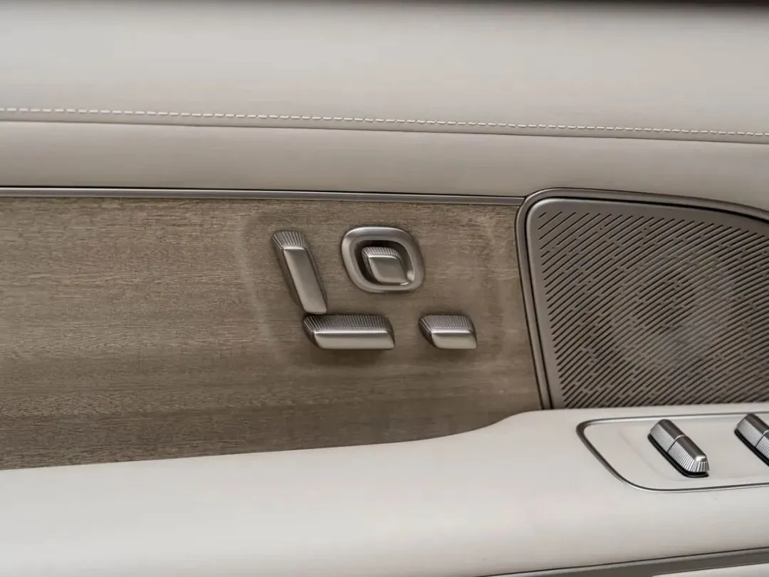 5280mm的车长,停在路边比旁边的SUV都高出一截。造型比以前方正多了,有点像路虎那种硬朗范儿。前大灯上面有333个切割面,晚上点亮的时候确实好看。门把手是自动感应的,人一靠近就弹出来,这种细节让人觉得挺讲究。