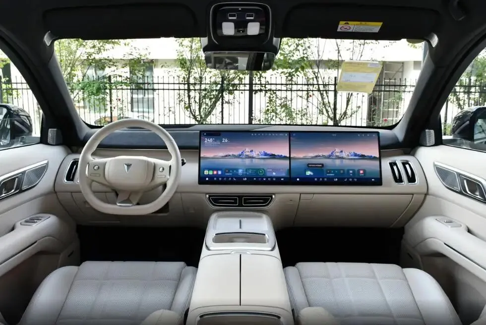 智能座舱方面,深蓝S09提供前排双15.6英寸联屏+43英寸AR-HUD抬头显示,后排提供21.4英寸娱乐屏,光坐在车内就能感受到满满的科技感,并且这车还配备鸿蒙座舱Harmony Space 5,具备3D智控桌面,支持5W+应用上车,具备丰富的应用生态,且提供沉浸式百变空间,能够让车秒变私家电影院、臻享音乐厅、家庭K歌房等等,支持在车内K歌观影。至于语音控制、手机APP远程控车等基础功能更一应具备。
