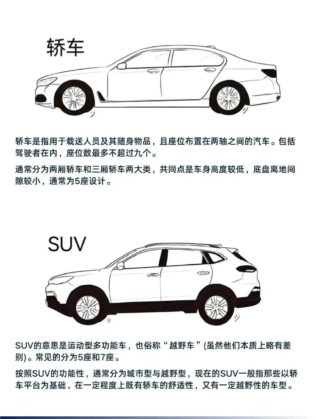 总结下来:要实用、能装、通过性强选 SUV;要好开、省油、舒适选轿车。