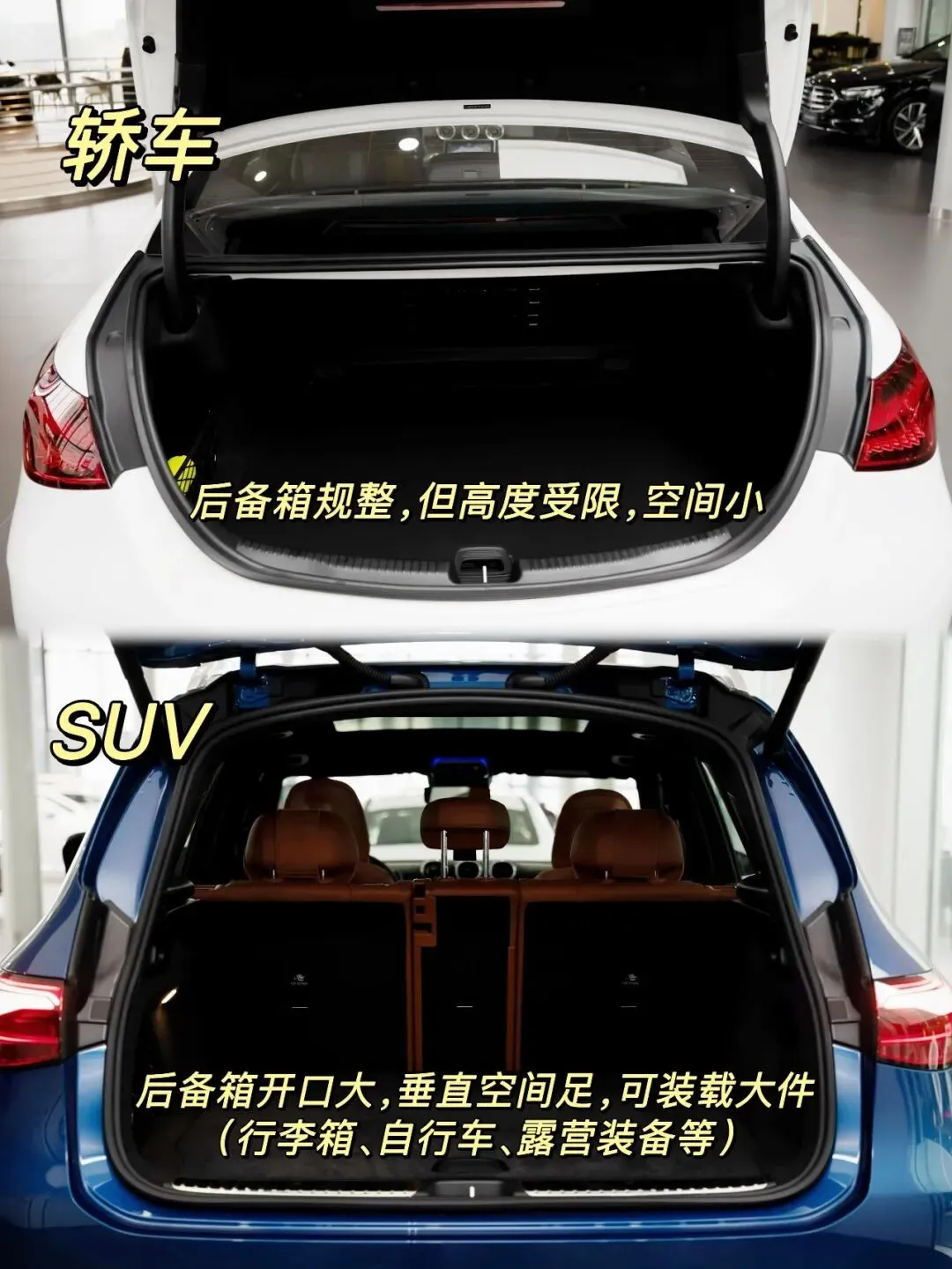 先从大家最关心的空间与实用性说起。SUV 最大的优势,就是垂直空间大、装载能力强。它的后备箱开口更高,内部更方正,放行李箱、背包、快递箱几乎不用刻意调整姿势。如果喜欢露营、骑行、短途旅行,帐篷、折叠车、行李箱、野餐装备统统能轻松塞下,甚至偶尔帮朋友搬点家电、行李也完全 hold 住。后排座椅放倒后,空间拓展能力远超轿车,临时当 “小货车” 都没问题。对于需要兼顾家人出行、带宠物、放婴儿车的年轻人来说,SUV 的实用性几乎是碾压级的。