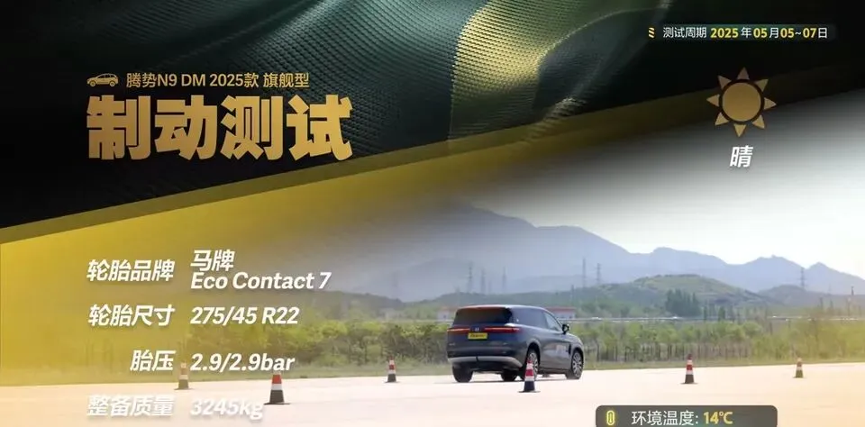 7,胎压2.9/2.9bar,整备质量3245kg。这么重的车,刹车成绩就看调校和轮胎了。