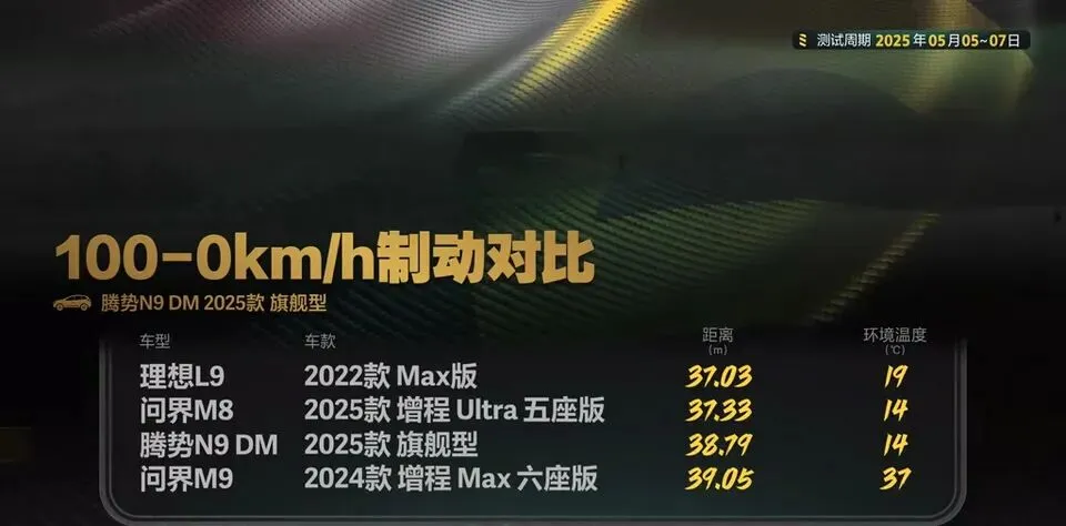 100-0km/h制动对比:理想L9 37.03m,问界M8