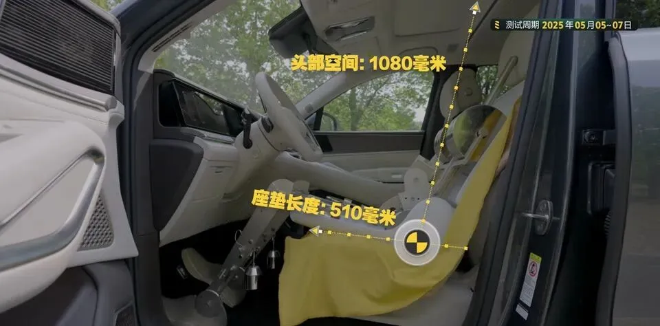 第二排:腿部766mm,头部1035mm,宽1580mm,座垫长度515mm。这些数据看得出来——它主打的就是“二排舒适区”。
