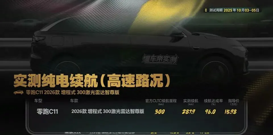 我很负责任地说:如果你想要一台中型增程SUV,日常通勤靠纯电,周末高速也不慌,且最在意“实测别打脸”,那零跑C11这套数据——287.9km、96%达成率、亏电6L/100km、37.74米刹停、16分钟30%-80%——确实称得上“魁首气质”。