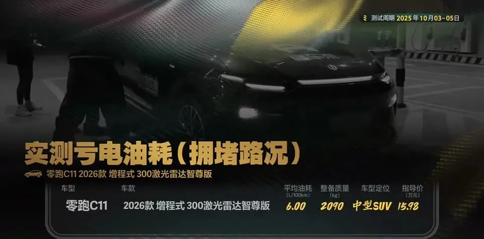 零跑C11亏电油耗测试结果