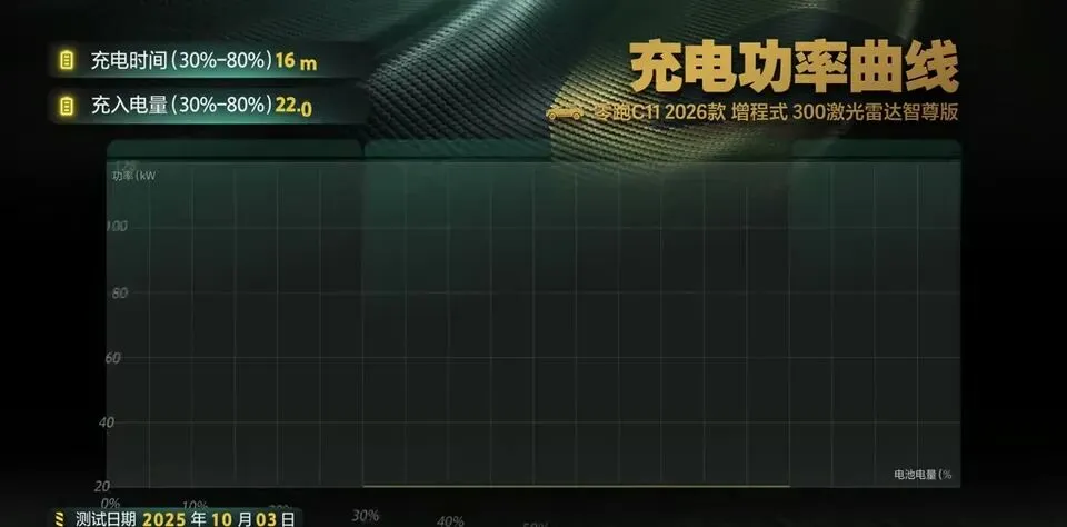 曲线结果也给了:30%-80%充电时间16分钟。这个成绩在同级增程里算利落的——你可以理解为“上个厕所+买杯咖啡,电就回来了大半”。