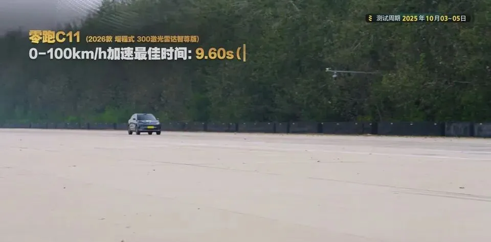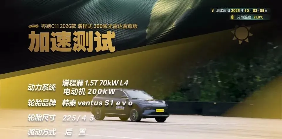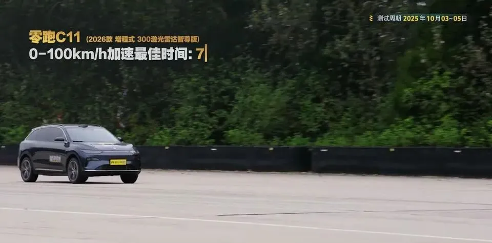 零跑C11亏电状态下加速测试结果