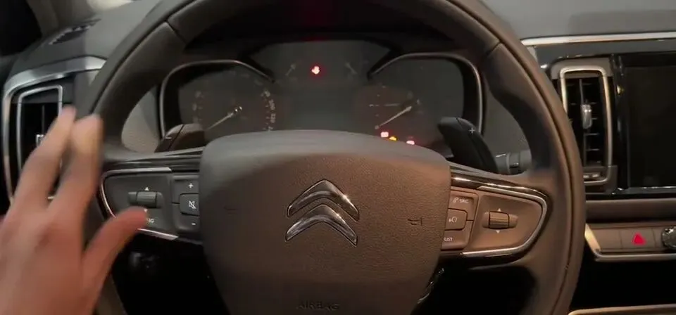 雪铁龙C6的方向盘,方向盘后方有两个硕大的换挡拨片。