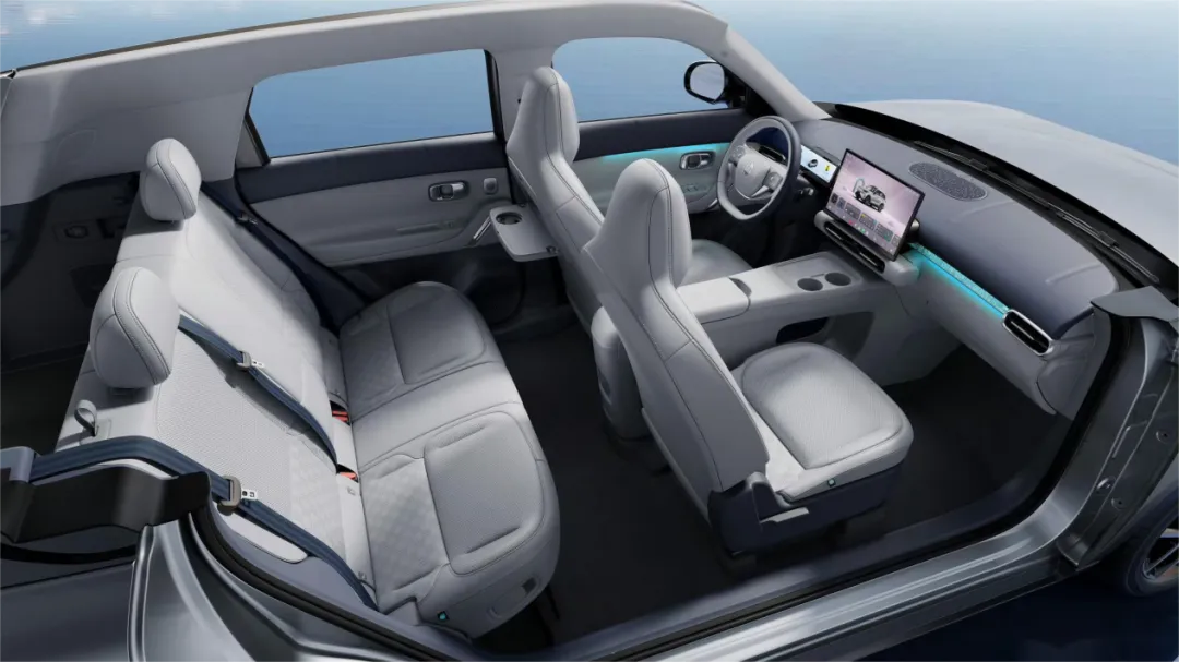 方向盘延续了零跑家族的双辐式设定,用触控面板+双色拼接皮革盘身,以及金属装饰件来增强了档次感。车内还有氛围灯来烘托氛围感,整个视觉观感还是比较在线的,不输市面上十几万/二十几万的车型。