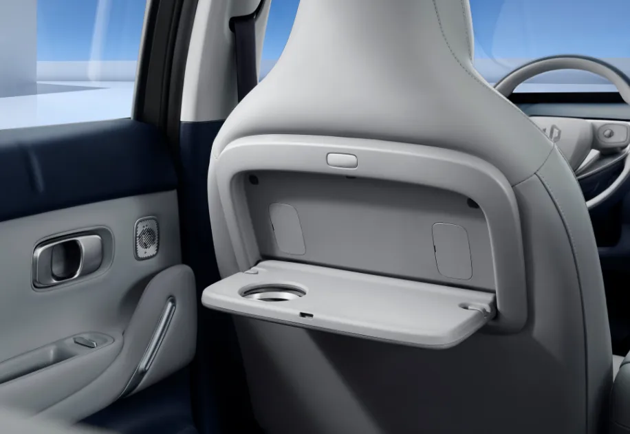 零跑A10的两张前排座椅采用一体式设计,且带有座椅加热功能,表层还有打孔处理,透气性更好。主驾座椅靠背位置,还设计有小桌板,并带有折叠杯架,这在同级别相当少见。其实,在两张前排座椅的靠背位置分别设立一个布兜,对实用性的提升会更大。