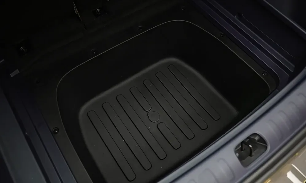 而说到后备厢,零跑A10的后备厢是有两种“形态”的,而实现两种形态的转变就在于后备箱地板隔板的使用,它能向下拓展出更多的纵向空间,来实现可利用空间的增多。并且,除此之外,在隔板最下方还有一个带放水孔的储物空间,以便于用户运输水产品,或者带有液体的打包盒等。