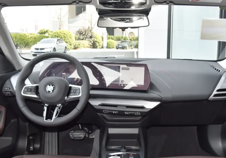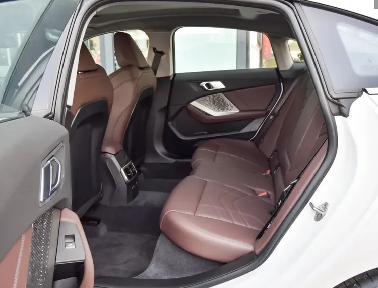 说到实用性,也不是说这辆车完全靠面子。比如音源调节的一个小滚轴,泊车辅助有一个按键,快速除霜和后视镜加热都是触控按键,它的实用性表现也不错。同时方向盘握持的手感和全新的3系、5系非常相似,同时还有M的运动标,这辆车的情绪价值拉得还是比较满的。它的后排质感来说,相较进口轴距的2系,国产加长了轴距,其实它可能比标轴3系还要大,所以它的后排空间非常有优势且宽敞。