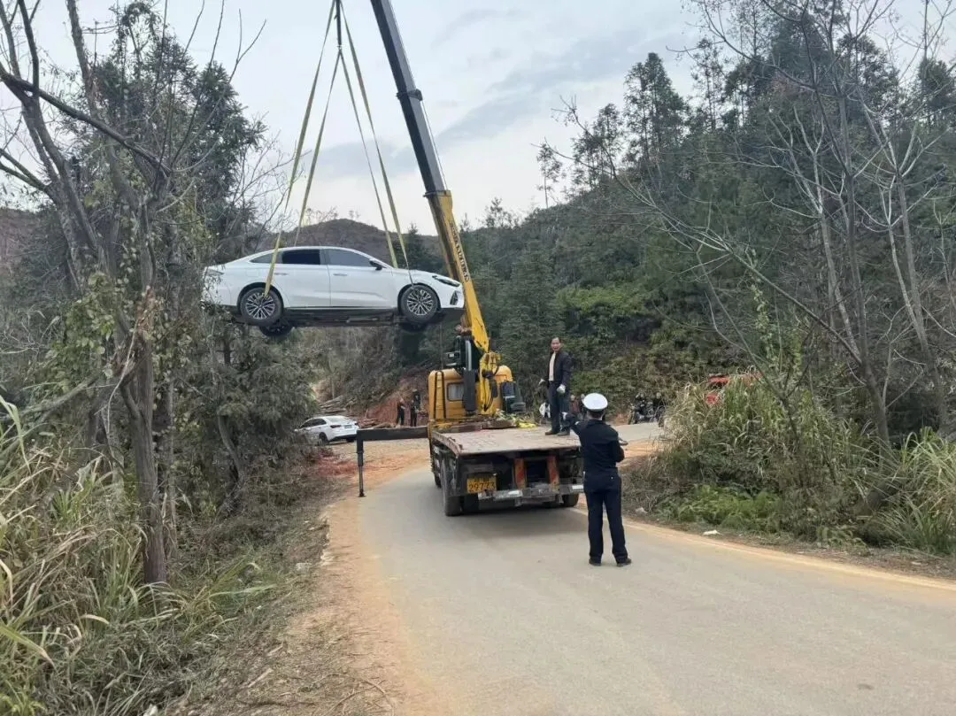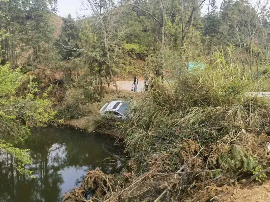 2026年2月21日(正月初五),会昌县公安局交管大队右水中队民警在晓龙乡刚处理完一起警情返回时,接到指挥中心警令,在晓龙乡桂林村路段有一辆小车驶出路外并滑落到池塘边,有坠入池塘的危险。