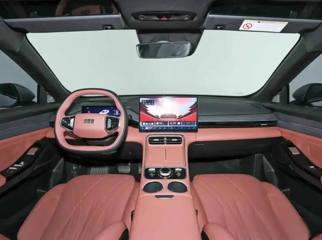 内饰看着像手机发布会那款,中控屏大得跟平板似的,座椅摸着不软不硬,车门拉手设计有点特别,推一下就能开,第一次用还真没反应过来,后排空调出风口该有的都有,就是座椅坐垫薄了点,坐久了屁股有点硬。