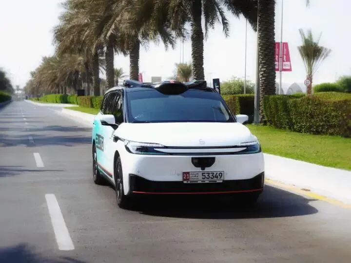 萝卜快跑无人驾驶汽车行驶在阿布扎比街头
